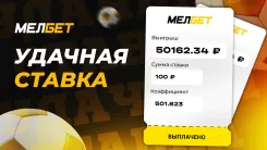 Игрок БК «Мелбет» поднял более 50 000 рублей со ставки всего в 100 рублей