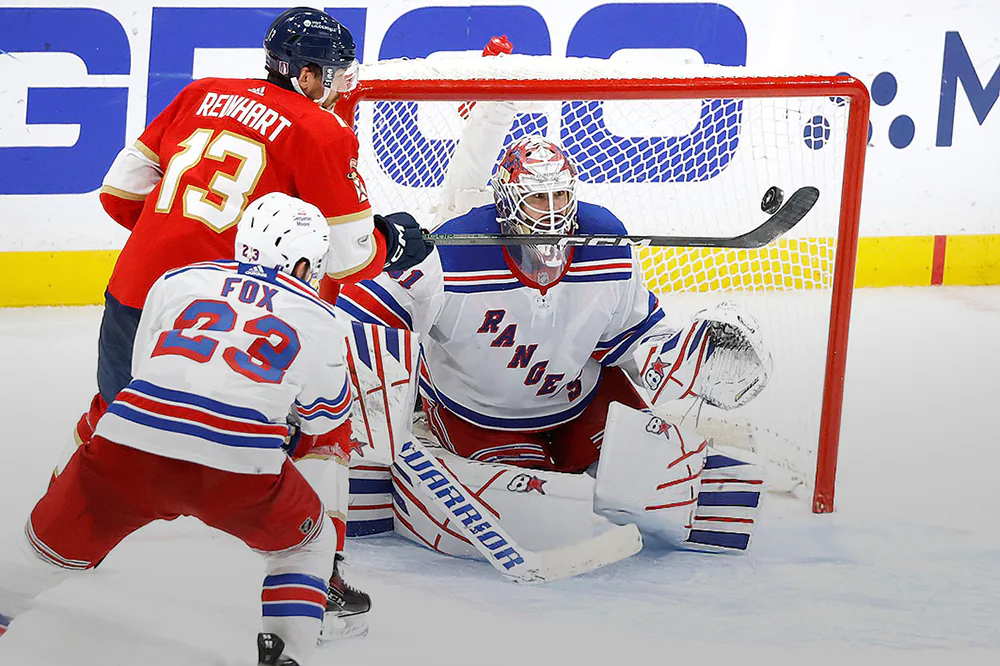 Только мы написали, что большое противостояние «Флориды» и «Рейнджерс», похоже, серьёзно уменьшит среднюю результативность нынешнего плей-офф НХЛ, как тут же команды выдали девять заброшенных шайб – в три раза больше, чем в каждой из предыдущих встреч серии. Ну и такое количество голевых мероприятий вектор нарратива, стержнем которого была до этой поры дуэль Бобровского и Шестёркина, как кажется, подправило. Но это только на первый взгляд.