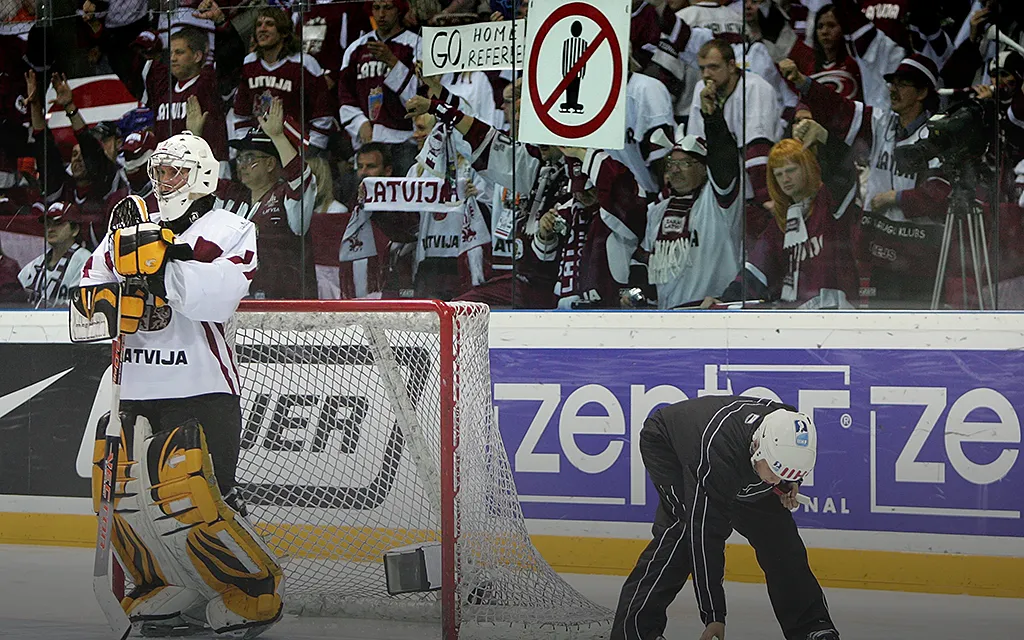 В 2006 году чемпионат мира принимала столица Латвии Рига. В те годы отношения между балтийской страной и Россией ещё не были безнадёжно испорчены, и руководили сборной хозяев турнира именно наши специалисты. Главным тренером был Пётр Воробьёв, его помощником — Олег Знарок, в будущем наставник национальной команды России.