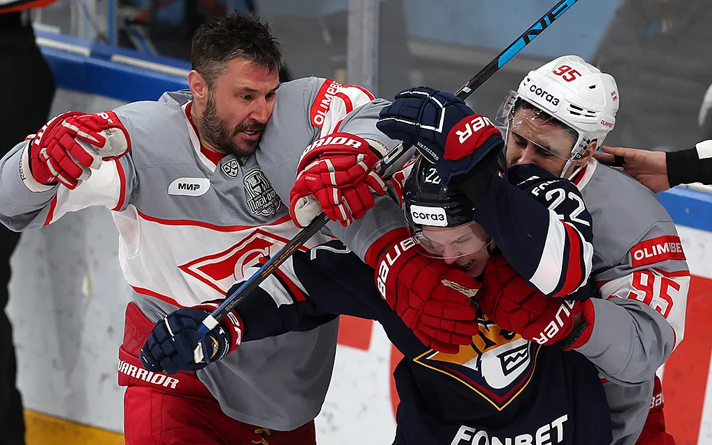 Второй период получился не менее насыщенным на события. «Спартак» не без труда больше минуты выстоял втроём против пятерых соперников. А Илья Ковальчук пытался как мог «завести» своих партнёров по команде, сначала заставив негодовать магнитогорские трибуны после эффектного силового приёма, затем — устроив стычку с Канцеровым.