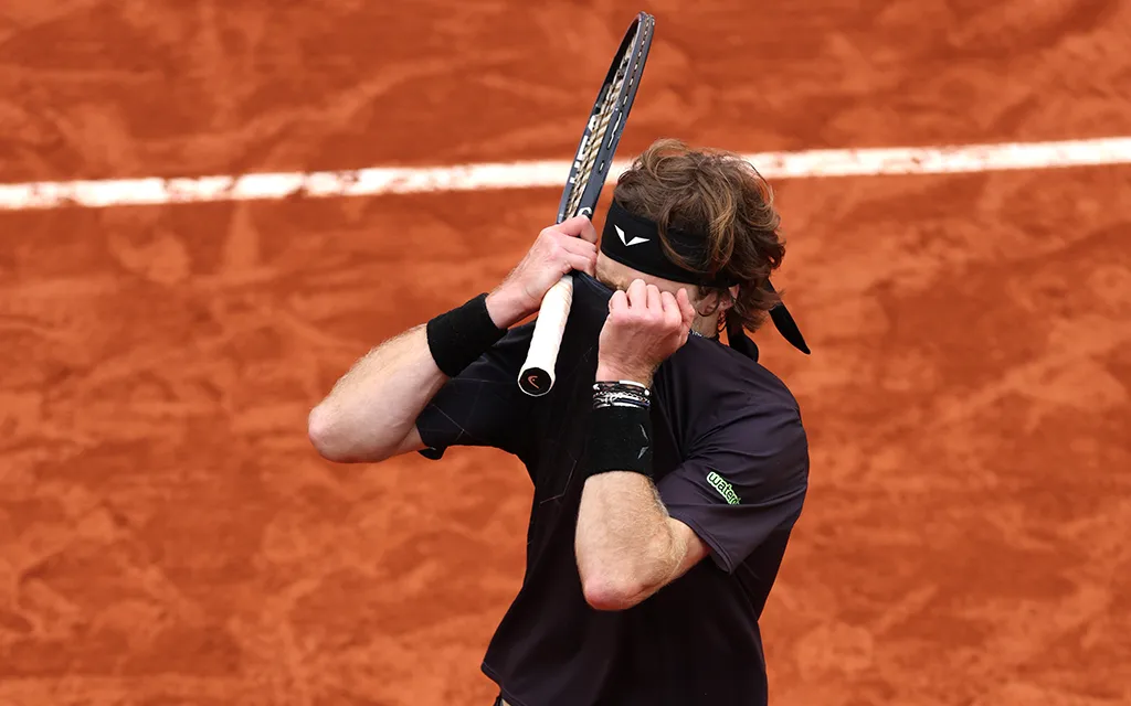 Светлый луч блеснул в начале второй партии. Рублёв с ходу сделал брейк. Тут надо пояснить, что в первом сете ни с одной стороны брейк-пойнтов не было. А тут сразу так славно получилось. Но три минуты спустя Андрей отдал свою подачу, и наметившийся было камбэк завис под огромным вопросительным знаком.