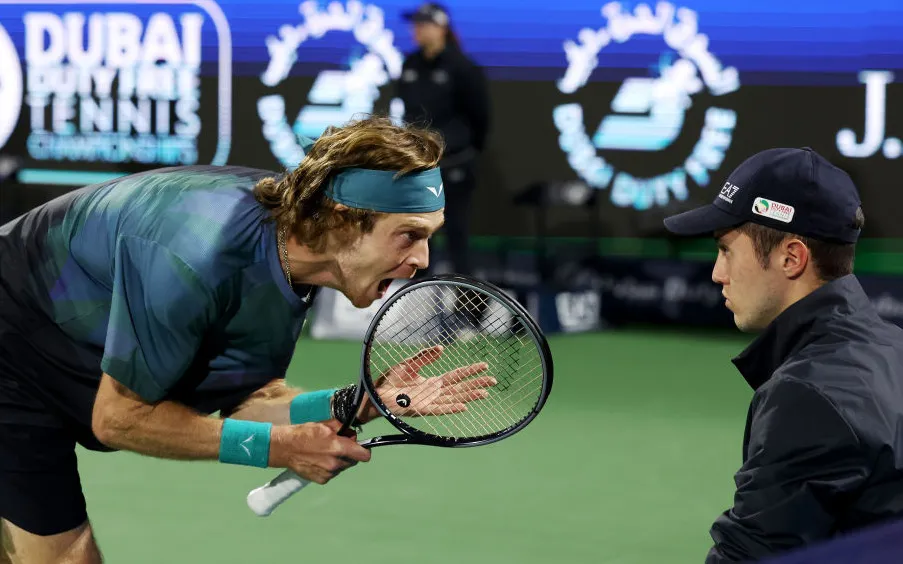 Он повёл 6:5, и в этот момент произошло событие, которое перечеркнуло 2 часа 21 минуту гениального поединка. Рублёв привычно психанул. Он накричал на линейного. А линейный пошёл и пожаловался супервайзеру. Решение было коротким: Рублёва дисквалифицировали.