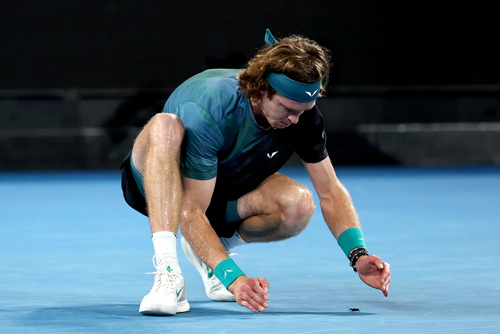 Впрочем, болельщиков Андрей всё же повеселил. Почти минуту он тщетно пытался поймать дерзкое насекомое, выползшее на корт. В итоге сверчка изловили девочки, подающие мячи.